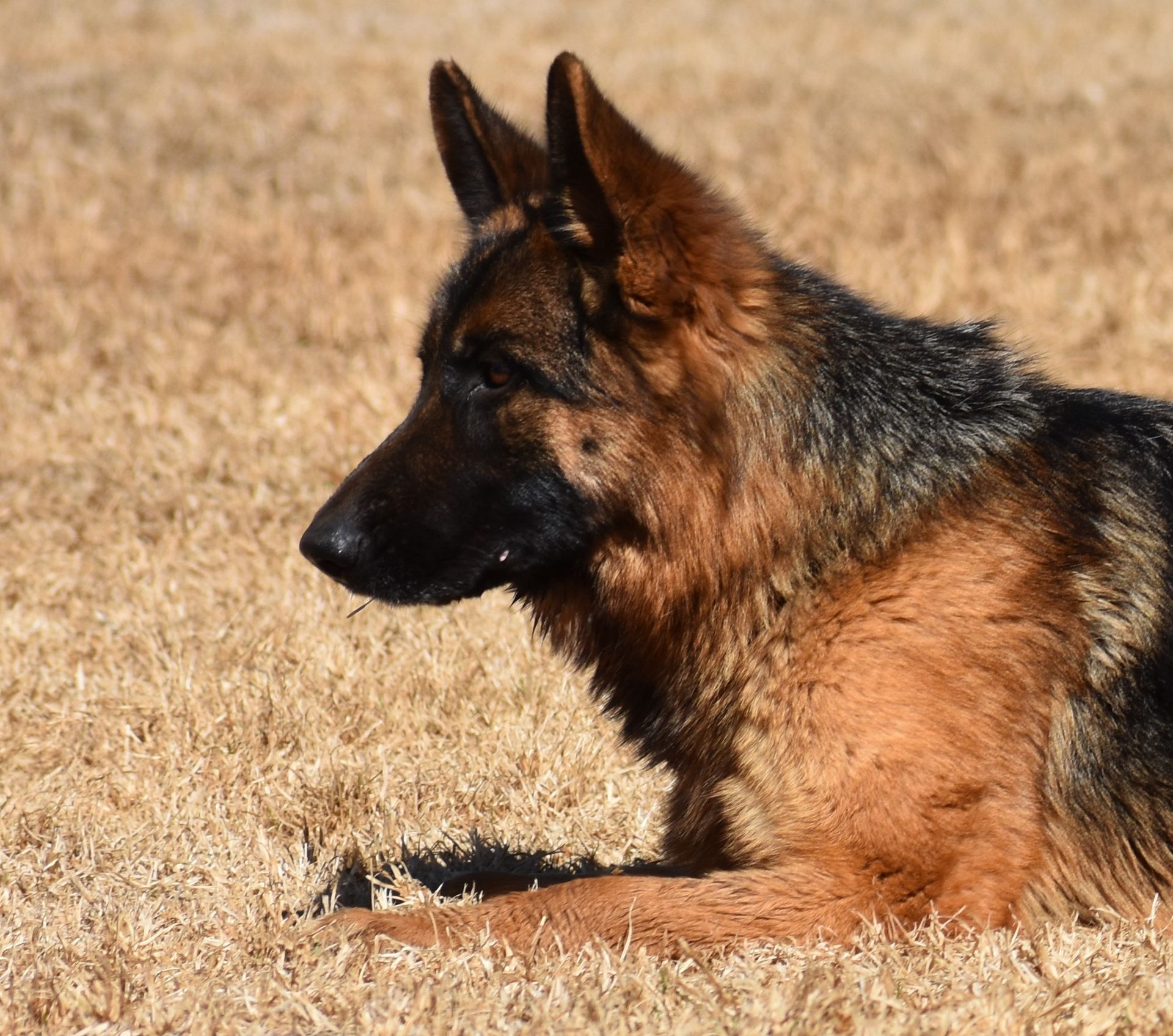 Upper medium size, medium strong and substantial with very good body proportions and very good pigmentation. Very good head and expression with a dark mask and dark eyes. High wither with a straight back. Well laid croup that should be fractionally longer. Very good hind angulation, the upper arm should be longer and better angulated. Correct in front. Correct going and coming. Balanced side gait with efficient hind thrust and good forward reach. TSB pronounced, dog releases.